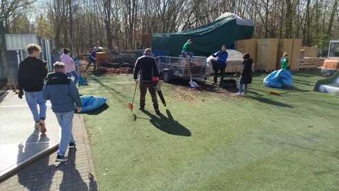 Bei schönstem Wetter haben wir dabei Laub gesammelt und entsorgt, Unkraut aus den Fugen und Ritzen entfernt, gekehrt, die Tornetze der Jugendtore ausgetauscht und den Kiosk geputzt.