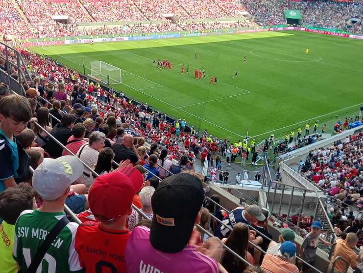 Am 01. Mai 2025 fand ausnahmsweise mal kein Training für die Jugendmannschaften des SSV Merten statt. Und das nicht nur wegen des Feiertages, sondern auch, weil zahlreiche Merkur-Kickerinnen und -Kicker samt Familien und Freunden einen besonderen Ausflug auf dem Plan hatten: Das DFB-Pokal-Finale der Frauen in Köln! Die Finalisten waren die Frauen vom FC Bayern München und von Werder Bremen und natürlich gab es verschiedene Meinungen zu dem gewünschten Pokalsieger.