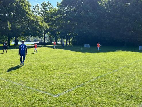 Ein tolles Auswärts-Spielefest beim Bonn International School Sport Verein (BISSV) bestritten unsere jungen MerkurKicker:innen der E1 am Samstag, 10.05.2025. Schon um 9:00 Uhr ertönte der erste Anpfiff zu insgesamt fünf Spielen gegen Gegnerinnen und Gegner des SC Rheinbach sowie des Gastgebers, der - wie wir - mit gleich mehreren Funino-Teams an den Start gegangen war. Bei herrlichstem Fußballwetter hatten nicht nur unsere jungen Spielerinnen und Spieler unglaublich viel Spaß auf der wunderbar direkt am Rhein gelegenen Naturrasenplatz-Anlage - auch etliche mitgereiste Eltern genossen sichtlich die frühen Sonnenstrahlen, tolle Spielzüge und zahlreiche Tore unserer Nachwuchskicker, die mit ihren beiden Teams das gesamte Spielefest sehr erfolgreich für sich gestalten konnten. Zum Schluss waren sich alle einig: So macht Funino, also das Fussballpiel auf je zwei Minitore, richtig Spaß!