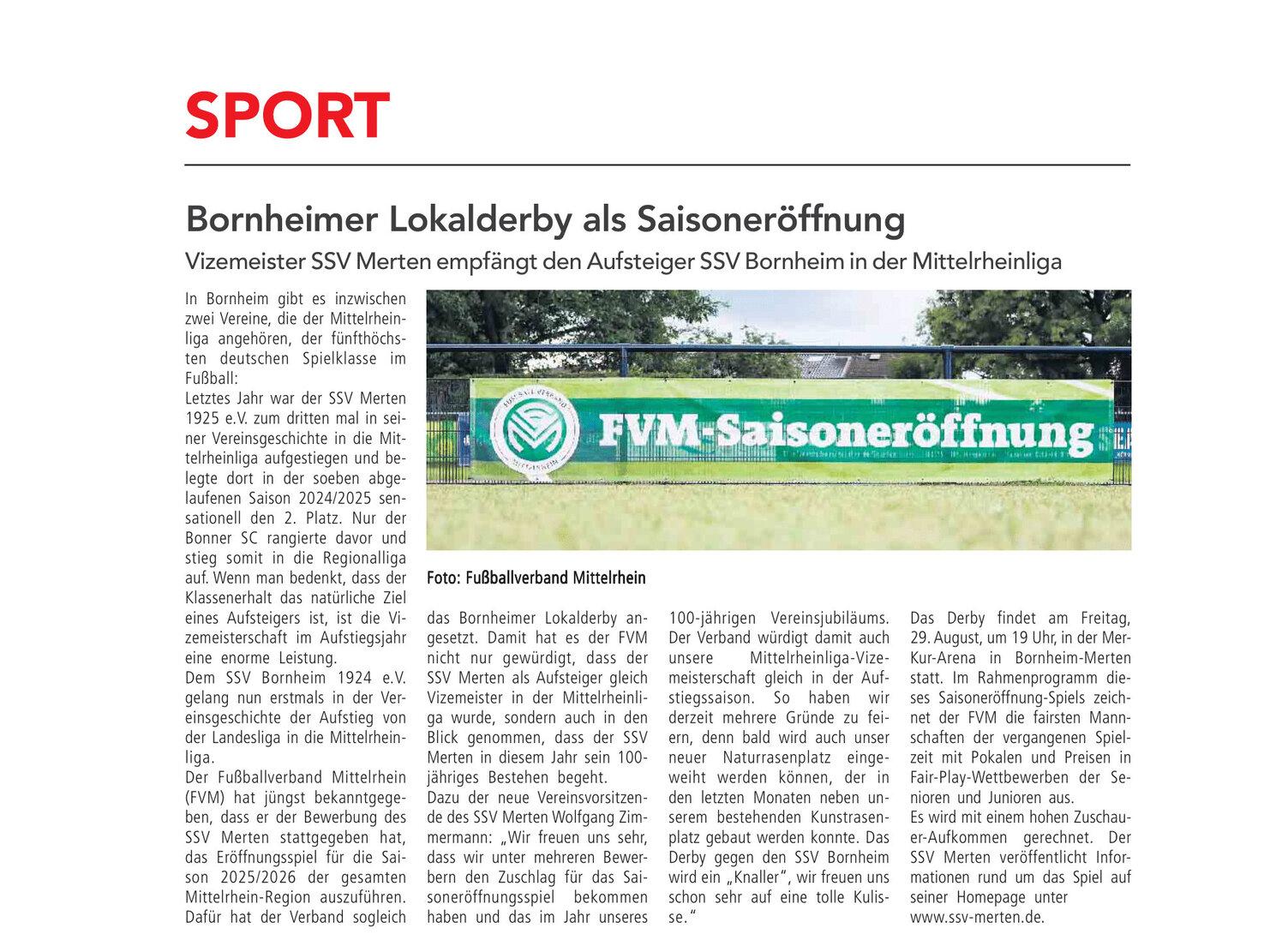 Bericht in "Wir Bornheimer" vom 16.08.2025