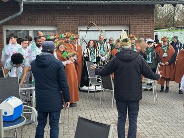 Theo Riegel begrüßt am 08.02.2026 das Prinzenpaar Lars I. und Sonja I. nebst Gefolge.