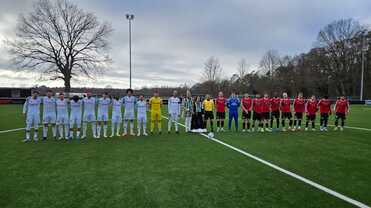 Die beiden Mannschaften und das Prinzenpaar stellen sich auf.