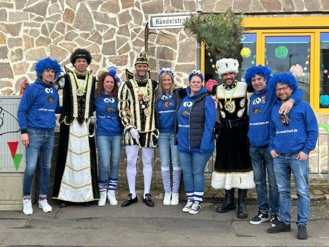 Mit der Weiberfastnacht hat die heiße Phase des Karnevals begonnen. Unser Dreigestirn startete nach dem Besuch der Grundschule Merten zu einer Stippvisite bei unserem Partner Michael Schmitz Signal Iduna Versicherung & Finanzen, von dort ging es mit der Bahn zur Rathausstürmung nach Bornheim. Es folgten Besuche der Züge von Roisdorf und Kardorf, ein Einmarsch im Festzelt in Merten sowie bei Heinz Schwarz im Treffpunkt.